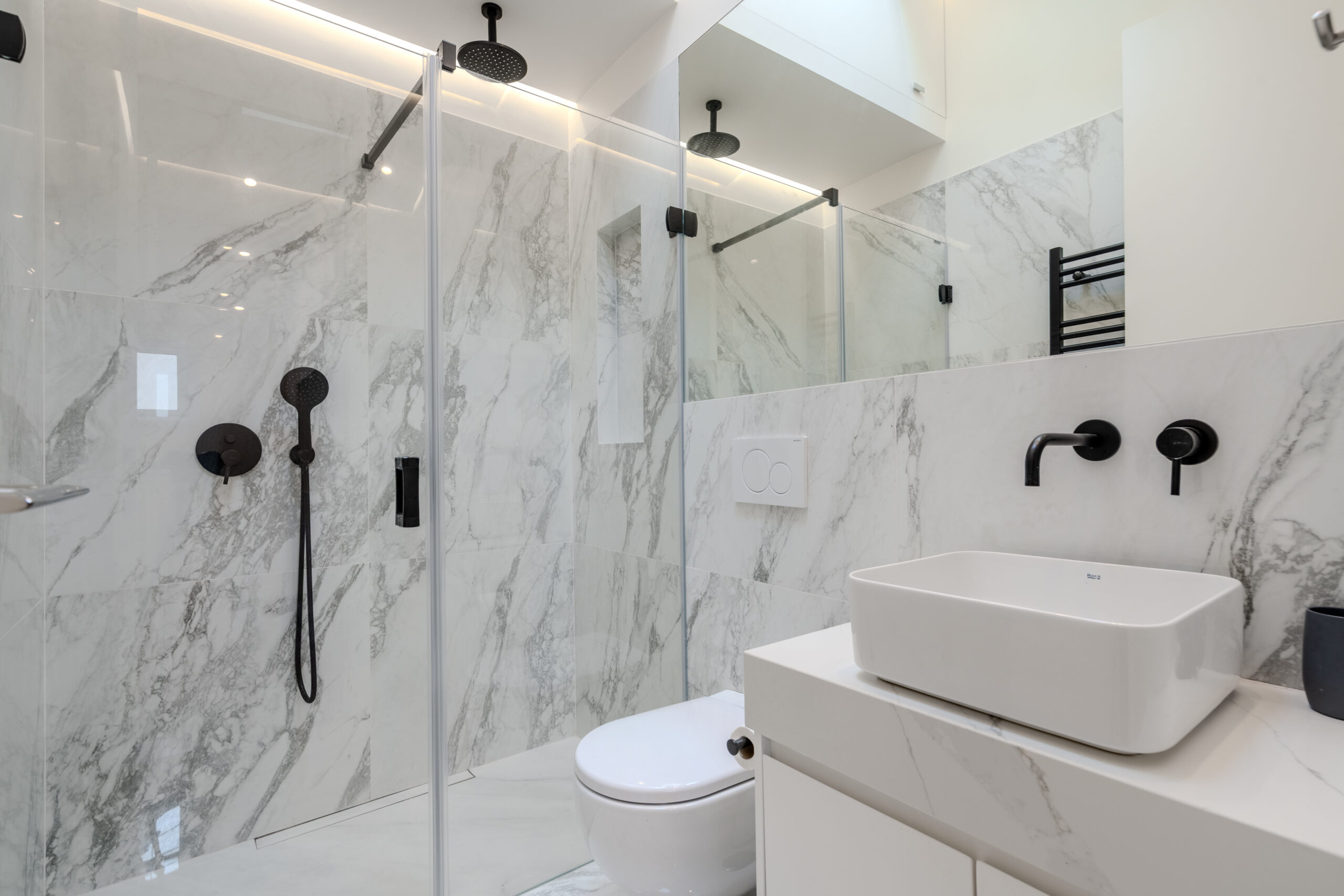 - Two en-suite bedrooms, both with built-in wardrobes and walk-in showers